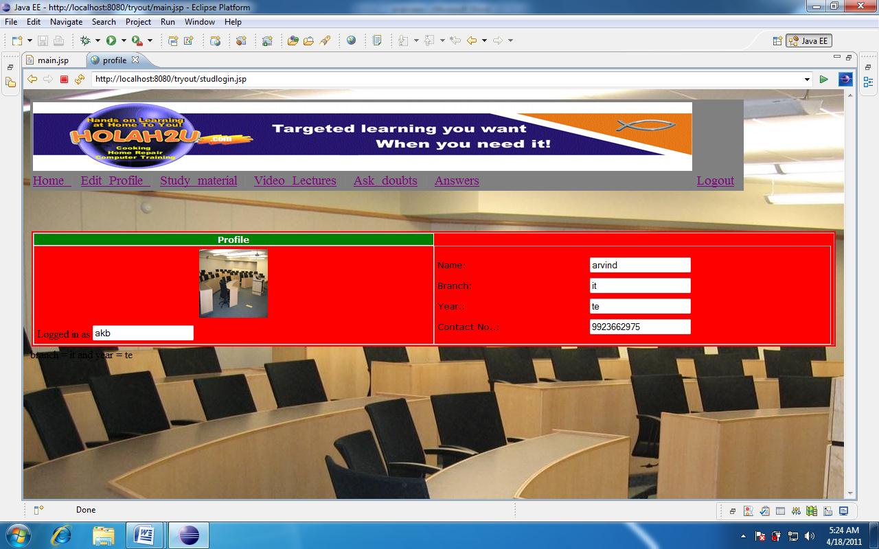 Once logged in a student has the following features:-